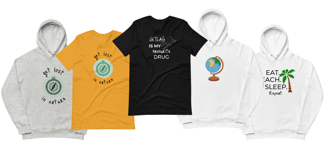 Hier geht’s zu außergewöhnlichen T-Shirts und Hoodies mit einzigartigen Reiseprints!